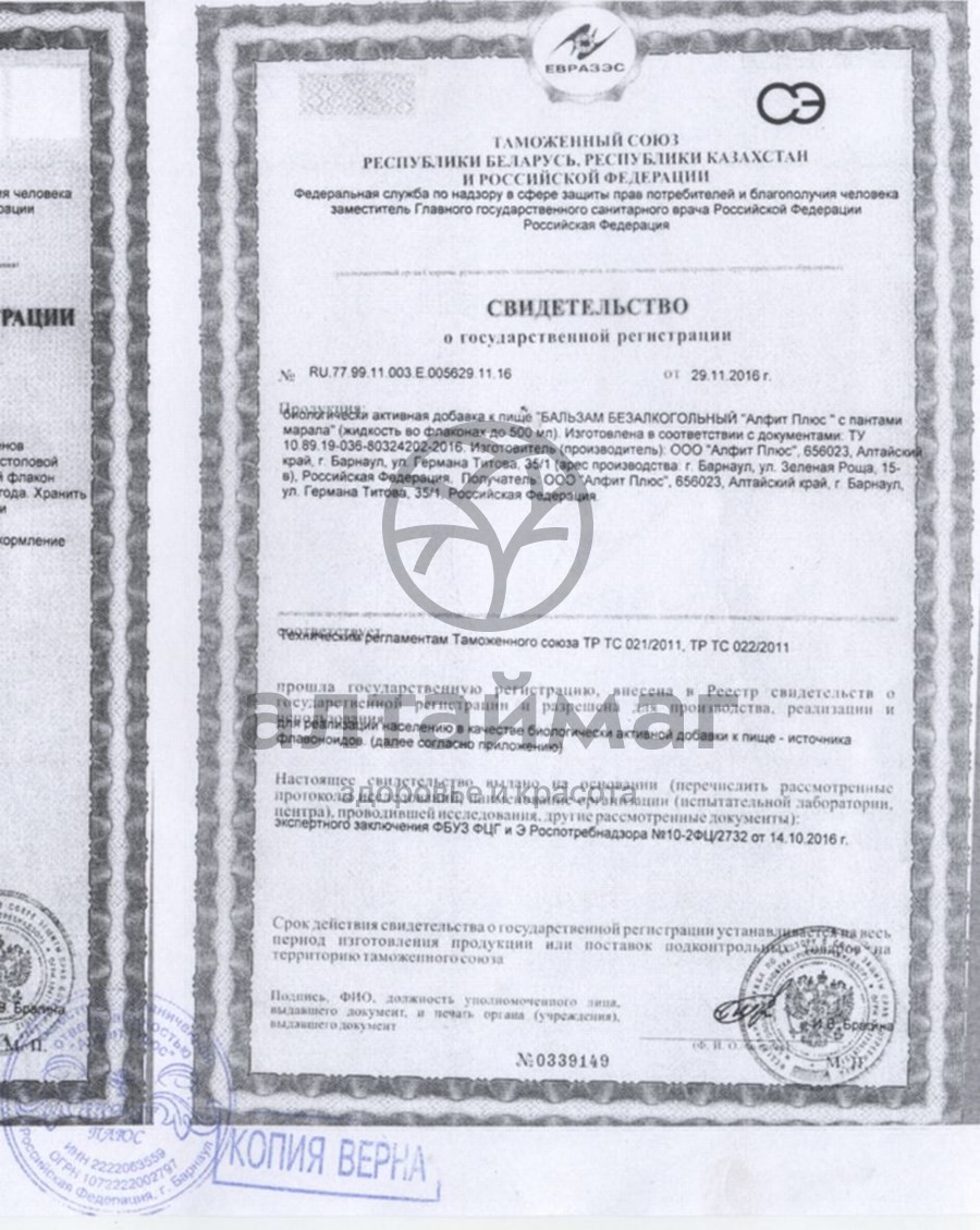 Состав Бальзама Алтайфлора с пантами: