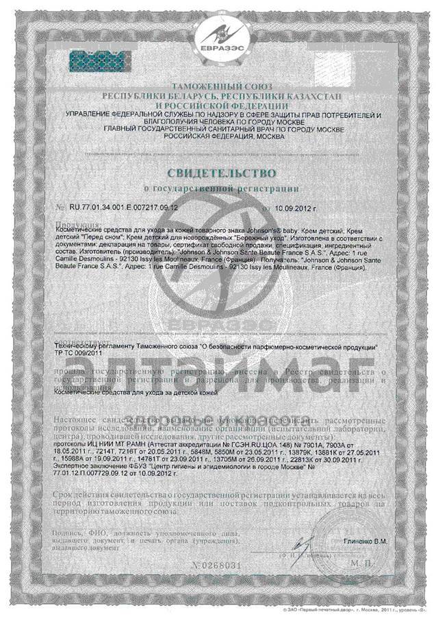 Меры предосторожности при применении Увлажняющего детского крема Johnson's® Baby