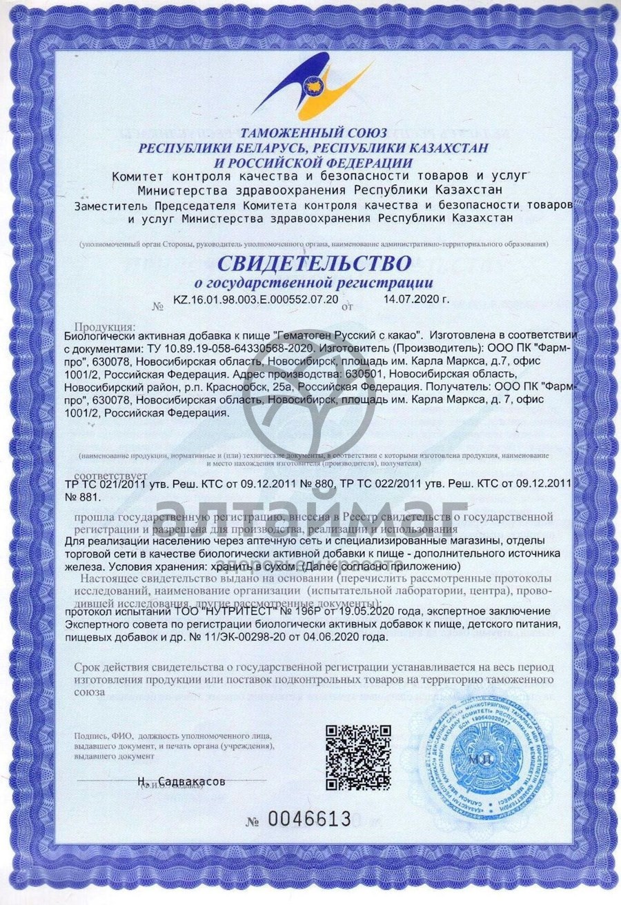 - Купите Гематоген с какао Русский 40г в Одинцово по доступной цене 45 ₽ с доставкой на дом или заберите Ваш заказ в Одинцово из ближайшего пункта выдачи, сделав заказ на AltaiMag.ru.