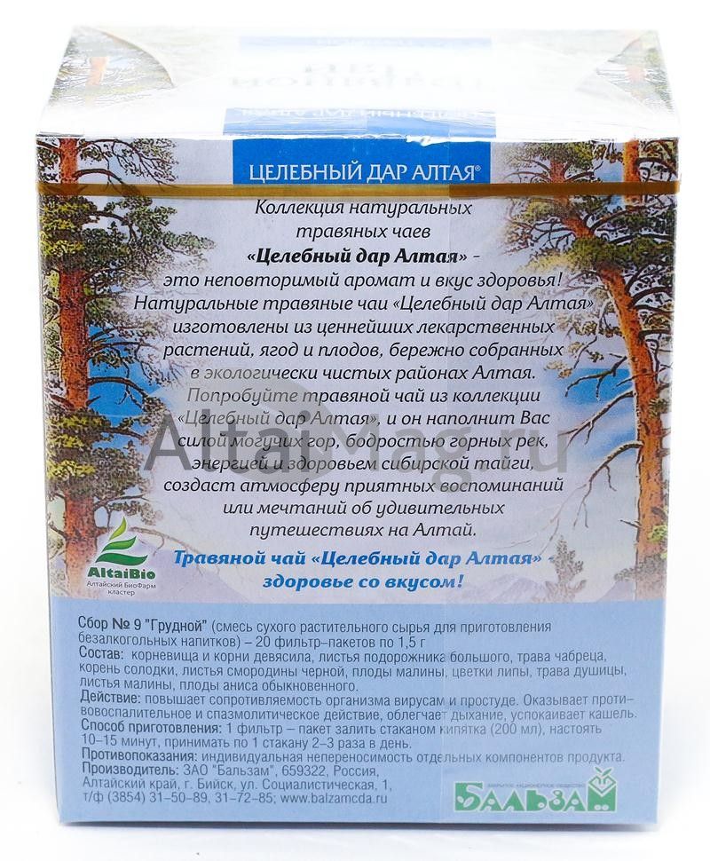 - Купите Грудной сбор №9, 20 пакетиков в Одинцово по доступной цене 126 ₽ с доставкой на дом или заберите Ваш заказ в Одинцово из ближайшего пункта выдачи, сделав заказ на AltaiMag.ru.