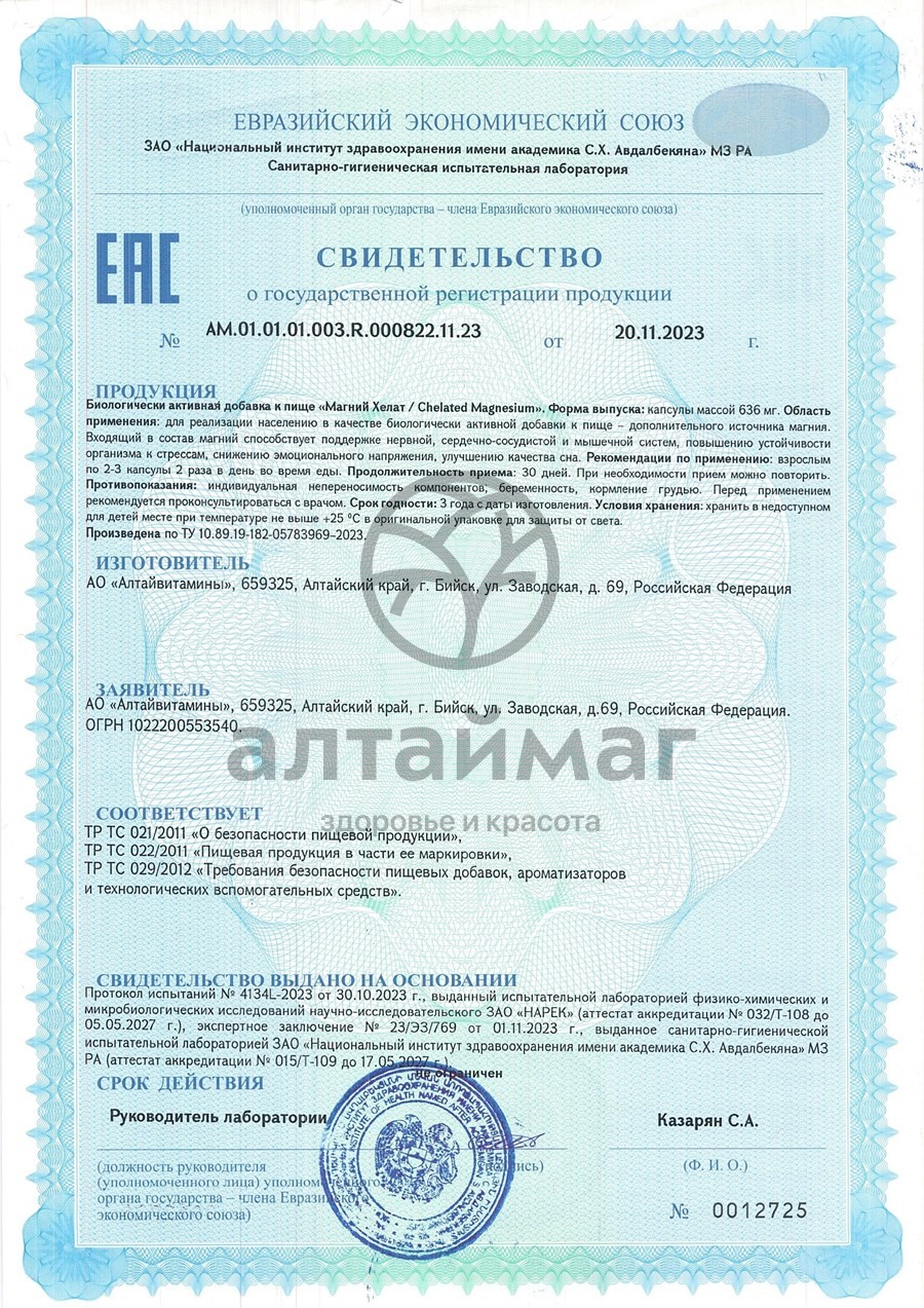 - Чтобы купить Магний Хелат Алтайвитамины 120 капсул совершите всего несколько шагов: укажите количество продукта и нажмите на кнопку «Купить».