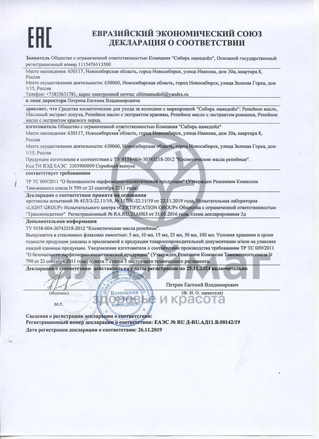 Есть вопросы по товару "Масло репейное Сибирь Намедойл 50мл"?