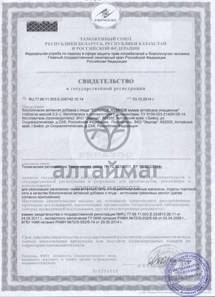 - Чтобы купить Мумие золотое Эвалар №200 совершите всего несколько шагов: укажите количество продукта и нажмите на кнопку «Купить».