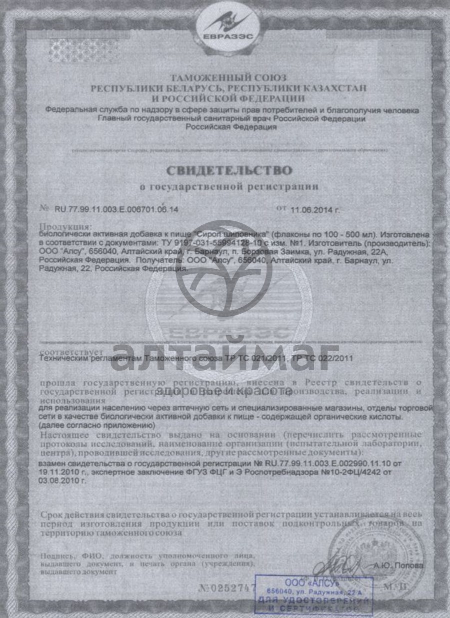 Если Вы хотите купить наш фирменный продукт, выпущенным под брендом «АлтайМаг», то можете заказать его на нашем сайте. Цена сиропа шиповника «АлтайМаг» невысока, а польза здоровью от него – огромная.