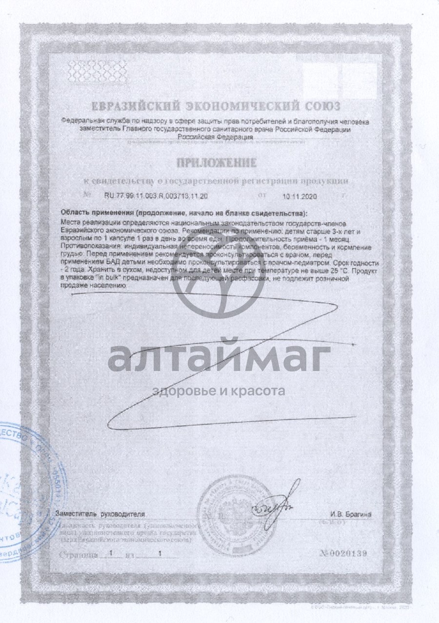 детям старше 3-х лет и взрослым по 1 капсуле 1 раз в день во время еды. Продолжительность приёма - 1 месяц. Перед применением рекомендуется проконсультироваться с врачом. Перед применением БАД детьми необходимо проконсультироваться с врачом-педиатром.Особые условия